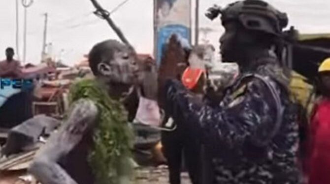 A video from the scene that has gone viral on social media captured a visibly furious-looking fetish priest being followed by a crowd who cheered him on.